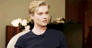 During the Halloween party, the only time that America saw him unshaven for two days for the sake of his pirate costume, she noticed "a shadow of dark blond fuzz that covered the bottom half of his face like a smile".